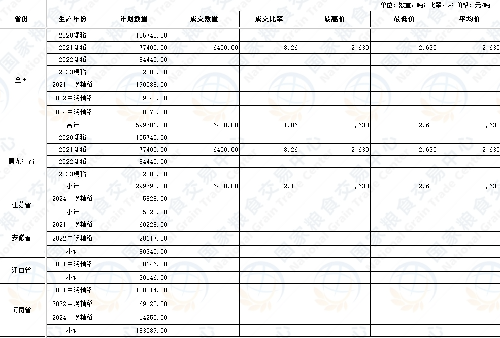 湖北粮网:国家政策粮食交易结果